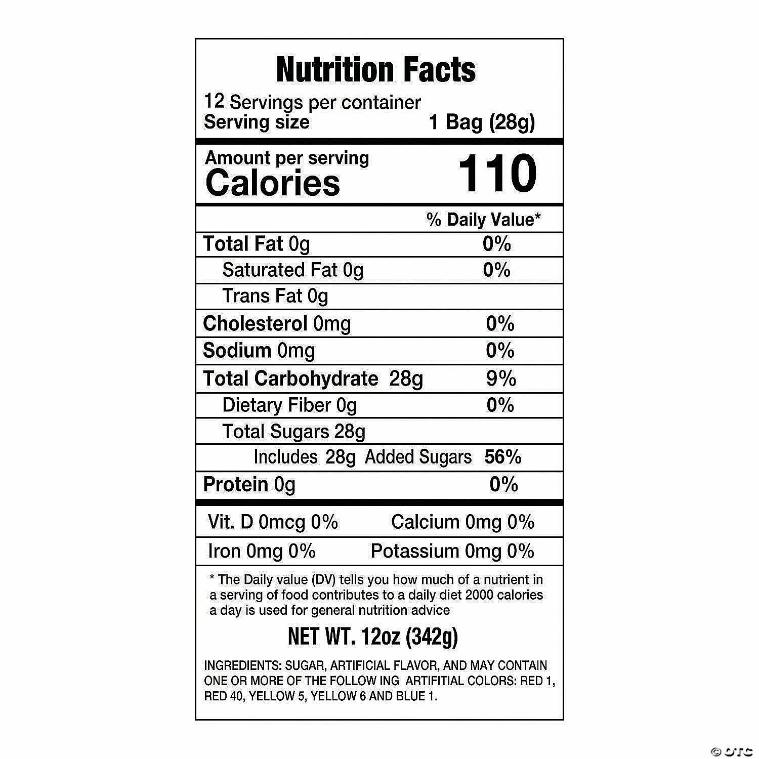 Cotton candy is a staple of school carnivals, and these individual bags eliminate the muss and fuss. Great for circus theme events, they’re also quick and easy to fill birthday party treat bags. Come one, come all, and grab a bag of this fruit-flavored candy floss! © OTC• Strawberry flavor.• Individually wrapped.• Size: 6″ x 8 1/2″• Total wt., 12 oz.• Fat-free.• Candy is non-returnable. For more information, visit our “Return Policy” page located on our website.• Ingredient, nutrition, allergen and other product information are provided on our Web and Mobile sites for reference purpose only, without warranty or representation as to accuracy. Manufacturers adjust their labeling regularly and are solely responsible for the accuracy of the information. For general questions concerning these items, please contact our customer service at 800-228-0475.