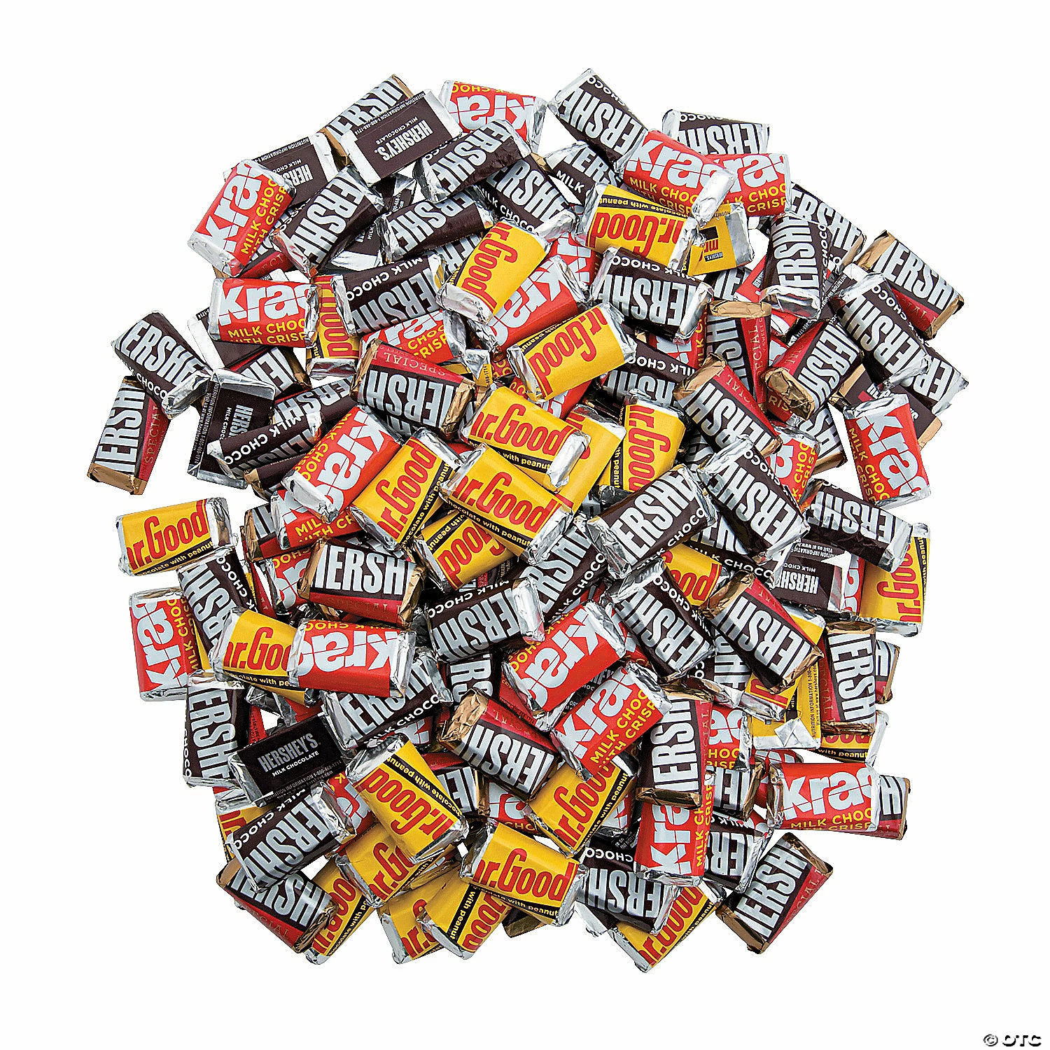 This huge assortment is chock-full of everyone’s favorite classic chocolate treats! It’s perfect for birthday party favor goody bags, weddings, St. Patrick’s Day gatherings, Valentine’s Day and more. These handy mini candy bars are a nice touch when you add a handful to a gift bag, Easter basket or Christmas stocking. When trick-or-treaters come calling, you’ll never run out of delicious chocolate — you’ll even have enough for your own Halloween party! This scrumptious assortment is full of must-have treats for every special occasion. Great value!• Includes Mr. Goodbar®, Krackel®, Special Dark® and classic Hershey® bars.• Individually wrapped. • (Approx. 220 pcs. per unit)• Total wt., 4 lbs.• Assortment may vary.• Candy is non-returnable. For more information, visit our “Return Policy” page located on our website.• Made in the USA. Important Country of Origin Information: For certain items sold by OTC on our Web or Mobile sites, country of origin information can change and what is displayed may not be accurate or consistent with manufacturer information. For up to date country of origin information, it is recommended that you rely on product packaging or other manufacturer information.• Ingredient, nutrition, allergen and other product information are provided on our Web and Mobile sites for reference purpose only, without warranty or representation as to accuracy. Manufacturers adjust their labeling regularly and are solely responsible for the accuracy of the information. For general questions concerning these items, please contact our customer service at 800-228-0475.