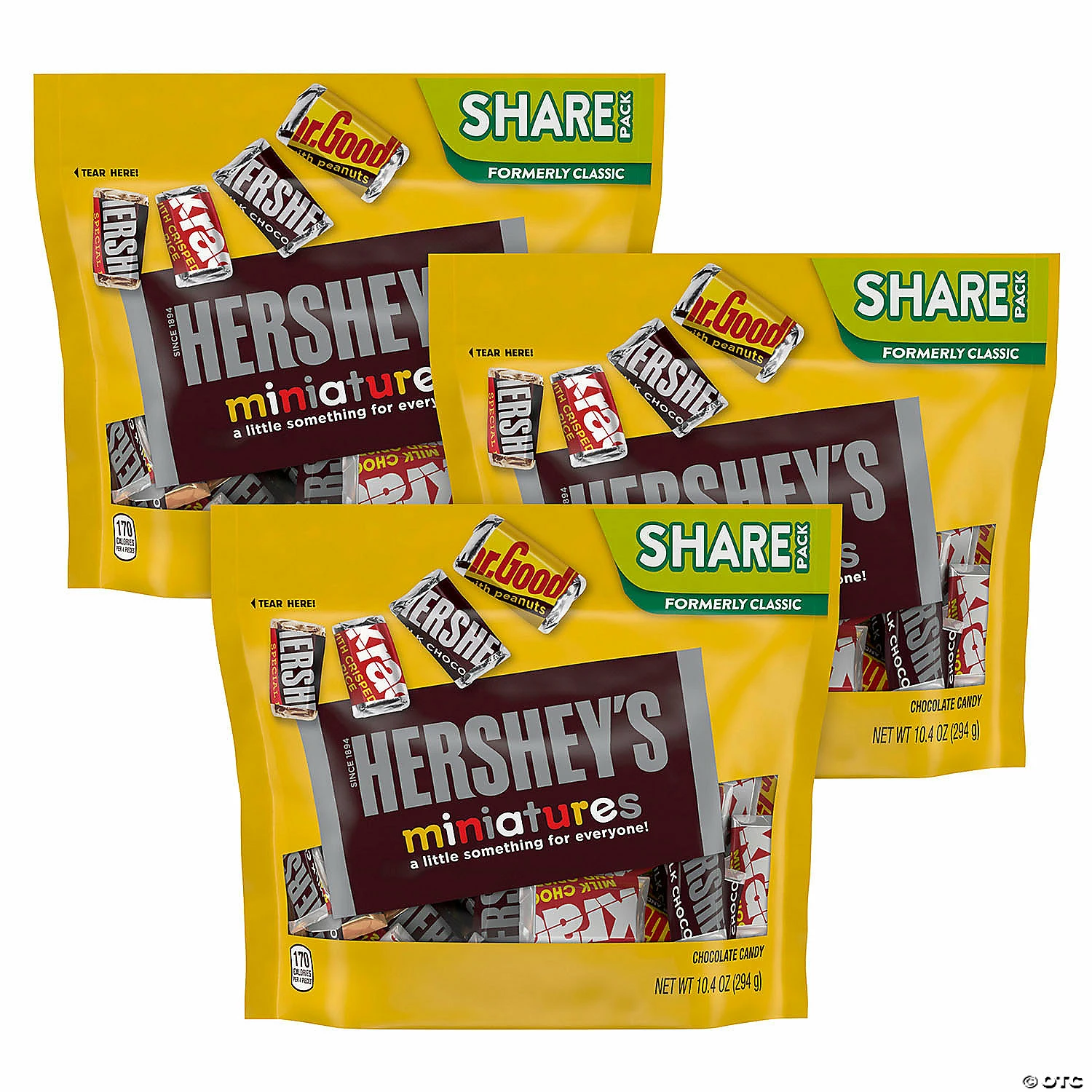 Thereโs something for everyone in a bag of HERSHEY’S Miniatures Assortment! Find all your favorite miniature versions of HERSHEY’S Chocolate Bars in one sweet bag: HERSHEY’S Milk Chocolate Bars, HERSHEY’S SPECIAL DARK Mildly Sweet Chocolate Bars, KRACKEL Chocolate Bars, and MR. GOODBAR Chocolate Candy with Peanuts.ย ย Special Shipping Information:ย This item ships separately from other items in your order.ย This item cannot ship to a P.O. Box.ย This item may be subject to additional processing days.ย ย Item is not eligible for expedited shipping.ย ย Candy is non-returnable. For more information, visit our โReturn Policyโ page located on our website.