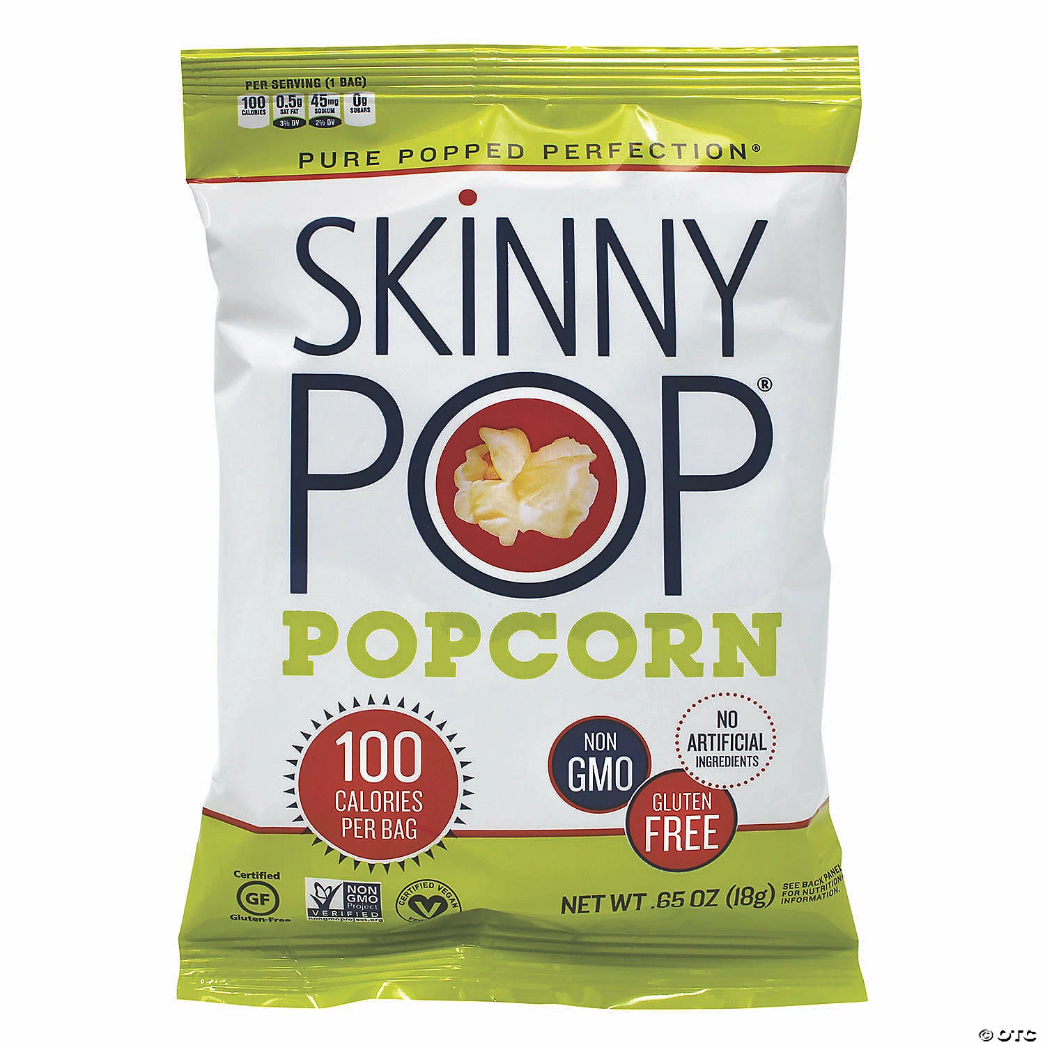 Snack your way through the pure popped perfection of this Skinny Pop 100 Calorie Popcorn Snack. Forget those sugary snacks and junk food, these Gluten-free, Non GMO popcorn pouches are a great healthy snack. Each case contains 28 0.65-Ounce bags of popcorn that are only 100 calories. Perfect for office snacking, or office vending machines, Skinny Pop is a must have for any office or home! Edibles are non-returnable. For more information, visit our โReturn Policyโ page located on our website.Special Shipping Information: This item ships separately from other items in your order. This item cannot ship to a P.O. Box. This item may be subject to additional processing days. ITEM IS NOT ELIGIBLE FOR EXPEDITED SHIPPING
